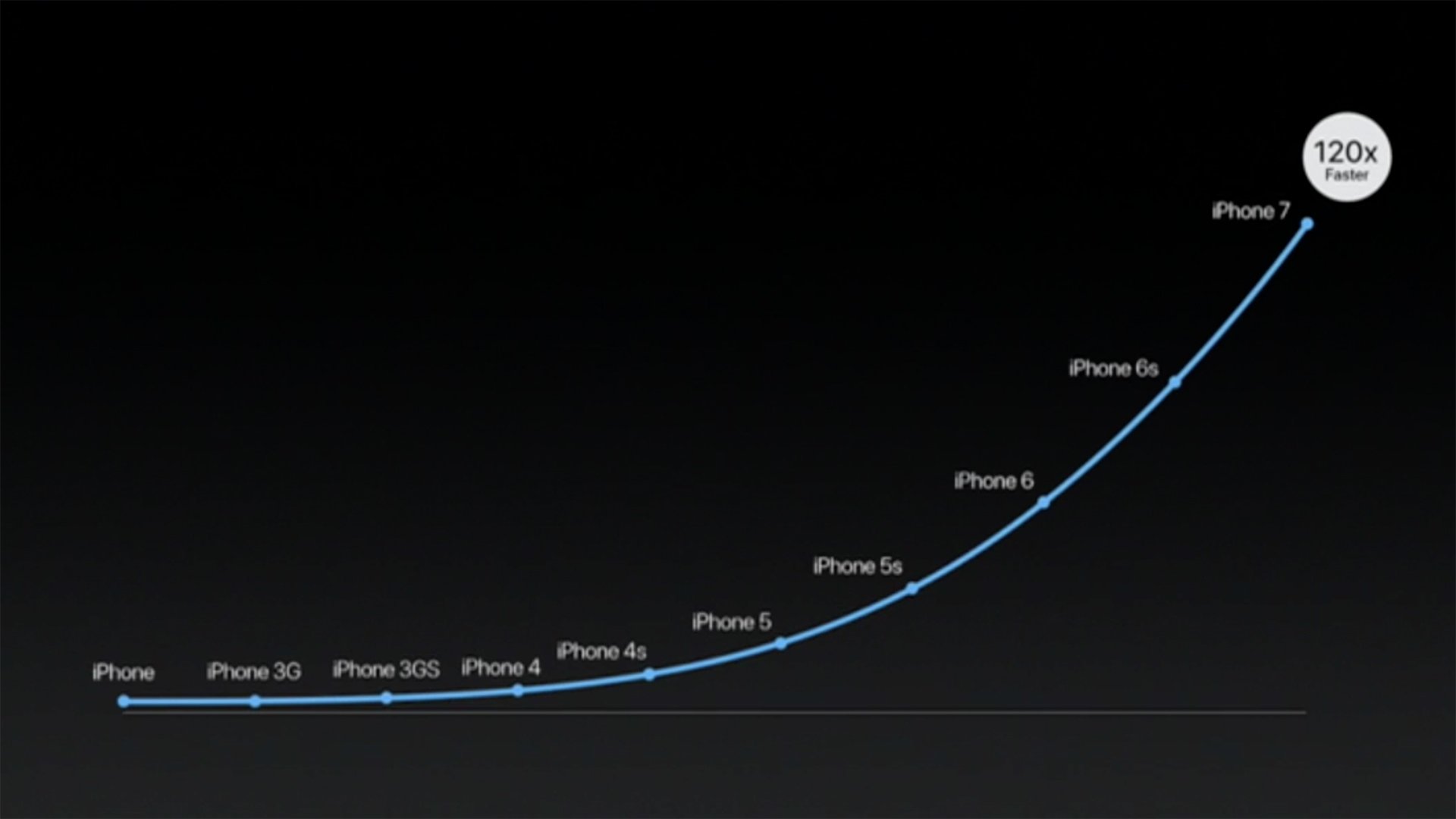 下圖為蘋(píng)果在2016年推出iPhone 7時(shí)的性能測(cè)試圖: