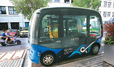 8月19日,由百度參與研發(fā)的全球首款L4級別無人駕駛巴士“阿波龍”通勤車亮相長陽創(chuàng)谷。