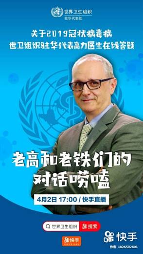 談及世界衛(wèi)生組織為何入駐快手并選擇快手進行此次直播合作,高力醫(yī)生表示,“很榮幸能與快手合作,向更廣泛的用戶傳達重要的健康信息。”