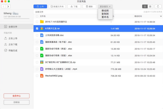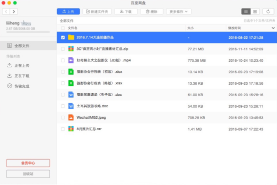 此外,為了防止資料遺失,我還將近期拍攝的作品上傳到百度網(wǎng)盤進行了資料備份,本來還擔心資料太多害怕內(nèi)存不夠,后來看見普通用戶擁有2048GB的存儲容量后我就放心了。所有資料,無論是大文件、文件夾還是壓縮文件包均可通過百度網(wǎng)盤Mac版的客戶端直接進行上傳,上傳的平均速度依舊十分穩(wěn)定和流暢。