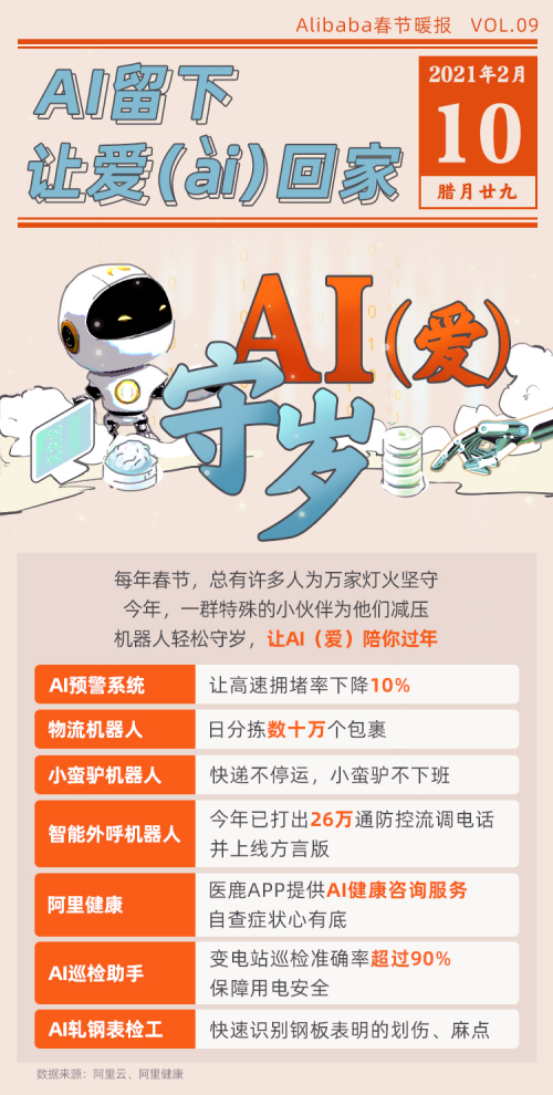 2021年春節(jié)臨近,為“防疫情、保供給、促消費”,不僅各地干群堅守崗位,還有一群特殊的“值班人”: 在疫情中高風(fēng)險地區(qū),有方言版智能外呼機器人;在貨倉,有物流機器人;在鋼鐵廠,有AI晝夜不停實施表檢;在變電站,有AI巡檢助手保障用電安全;在高速指揮大廳,有AI緩堵保暢;感覺不適,打開AI健康咨詢對照著自查癥狀,心里有底……