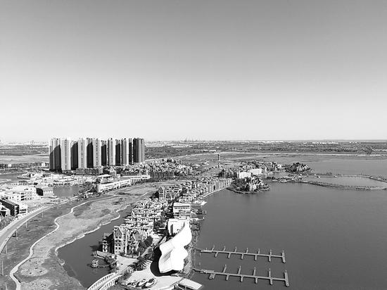 從天嘉湖大道往星耀五洲走,需經(jīng)過一座長橋。橋的兩側(cè)是規(guī)劃的景觀區(qū),整個湖區(qū)和前幾年一樣,還是一副蕭條、荒蕪的景象。兩側(cè)的廣告布早已褪去之前的光鮮,剩下的一兩塊好像在述說著項目的不堪。