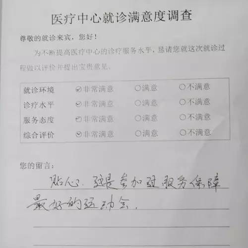 “就診滿意度調(diào)查”滿意率100% 暖心服務(wù)受稱贊