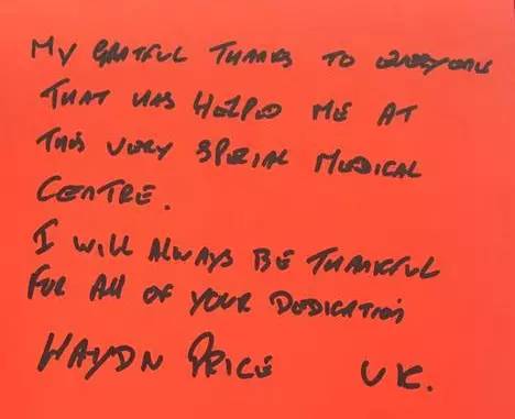 8月30日晚9點(diǎn)15分左右,香港代表隊(duì)英國籍馬術(shù)教練因咳嗽、胸痛到運(yùn)動(dòng)員村醫(yī)療中心就診,由于患者不會說中文,全運(yùn)村聯(lián)絡(luò)員梁靜給予全程英文講解,作為內(nèi)科醫(yī)生的梁靜仔細(xì)詢問了患者的病史,并進(jìn)行了詳細(xì)的查體,建議患者進(jìn)行了心電圖及血常規(guī)的檢查,經(jīng)過診治考慮患者為支氣管炎,詳細(xì)告知患者注意事項(xiàng)并給予藥物治療,藥劑科王楠耐心地用英文講解藥物使用的說明。患者對醫(yī)療中心的就診環(huán)境,快捷的診治,熱心及周到的服務(wù)表示非常滿意,評價(jià)incredible,同時(shí)用英文寫下自己的就診感受“MY grateful thanks to everyone.That helped me at this very special medical center.I will always be thankful for all of your dedication。”