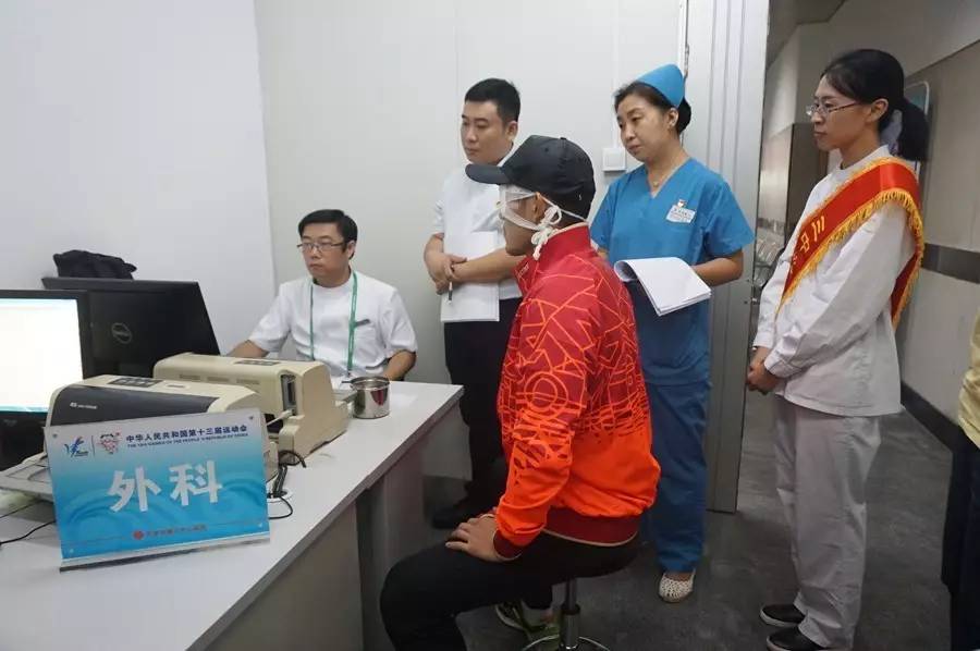 全運(yùn)村來賓走進(jìn)醫(yī)療站就能感受到“專業(yè)診療、暖心服務(wù)”,首先是導(dǎo)診護(hù)士的微笑迎診,全程陪同就診,醫(yī)生細(xì)致的查體、專業(yè)的診治、耐心解答病情,嚴(yán)格按照運(yùn)動(dòng)員用藥規(guī)定給予治療。對于需要回訪的患者,醫(yī)生每天都會認(rèn)真隨訪,做好健康指導(dǎo)工作。對于需要進(jìn)一步診治的患者,會由120無縫對接轉(zhuǎn)運(yùn)至三中心醫(yī)院,醫(yī)院第一時(shí)間開通綠色通道,由專人陪同,夜間由總值班協(xié)調(diào)患者就醫(yī),此時(shí)專科醫(yī)生和護(hù)士早已等候在全運(yùn)會專用診室,他們會為患者進(jìn)行詳細(xì)的檢查、及時(shí)的診治。有些運(yùn)動(dòng)員在訓(xùn)練或比賽時(shí)出現(xiàn)外傷行動(dòng)不便不能來醫(yī)療站就診時(shí),接到就診電話后,醫(yī)務(wù)人員會馬上趕到運(yùn)動(dòng)員身邊,為他們進(jìn)行及時(shí)有效的治療。