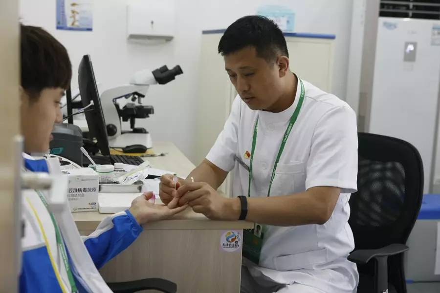 這些駐守醫(yī)務(wù)人員的背后則是全院醫(yī)務(wù)人員的全力支撐。曾有一位患皮膚病的運(yùn)動(dòng)員到醫(yī)療站就醫(yī),由于接診醫(yī)生王雪并非?漆t(yī)生一時(shí)間拿不準(zhǔn)用藥,只好在晚上九點(diǎn)多,發(fā)信息向醫(yī)院皮膚科主任邊鵲橋“求助”,邊主任二話沒說讓王雪發(fā)來患者照片,并做了詳細(xì)的用藥指導(dǎo)。之后兩天,王雪隨訪這名運(yùn)動(dòng)員,他非常開心地告訴王雪病情已經(jīng)有了好轉(zhuǎn),他的教練員對天津醫(yī)療服務(wù)非常滿意。