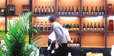 圖為部分展位開始陳列酒品。本報記者 錢進 攝