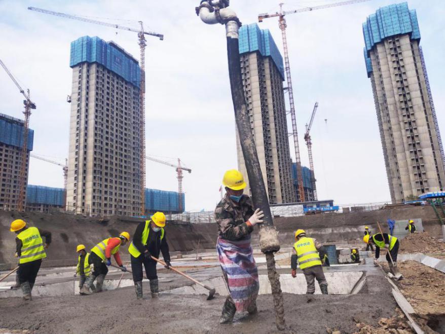 砼工班組在澆筑混凝土(央廣網(wǎng)發(fā) 中建三局供圖)