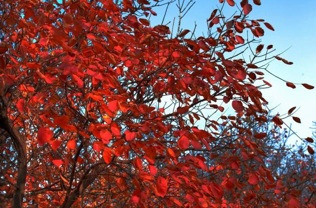 小檗,小檗科灌木,我國(guó)產(chǎn)200余種,許多種類秋葉紅色,是優(yōu)良園林觀賞植物。(北方網(wǎng) 曲璐琳)
