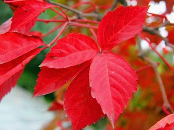 五葉地錦,又名美國(guó)地錦,葡萄科爬山虎屬。落葉大藤本,具分枝卷須,卷須頂端有吸盤(pán)。十月上旬葉色逐漸變紅,多用于園林墻壁及公路兩旁山巖裸露處綠化,也是優(yōu)良的觀紅葉樹(shù)種。