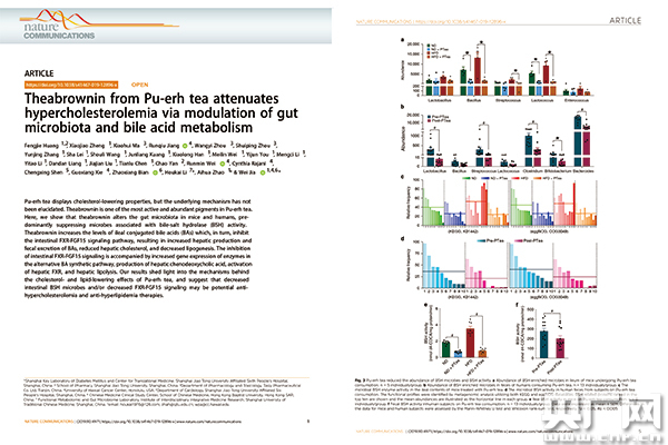 《Nature》子刊《Nature Communications》刊發(fā)賈偉教授及團隊完成的關(guān)于普洱茶降脂機制的研究