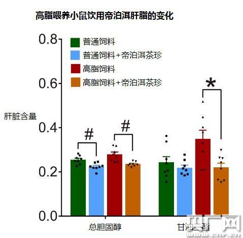 在人體實驗中,13名男性健康受試者進行一周的標準飲食,之后每天飲用3g帝泊洱普洱茶茶珍,持續(xù)4周,結(jié)果發(fā)現(xiàn)膽固醇和甘油三酯水平顯著降低。動物實驗也發(fā)現(xiàn)了類似的結(jié)果。