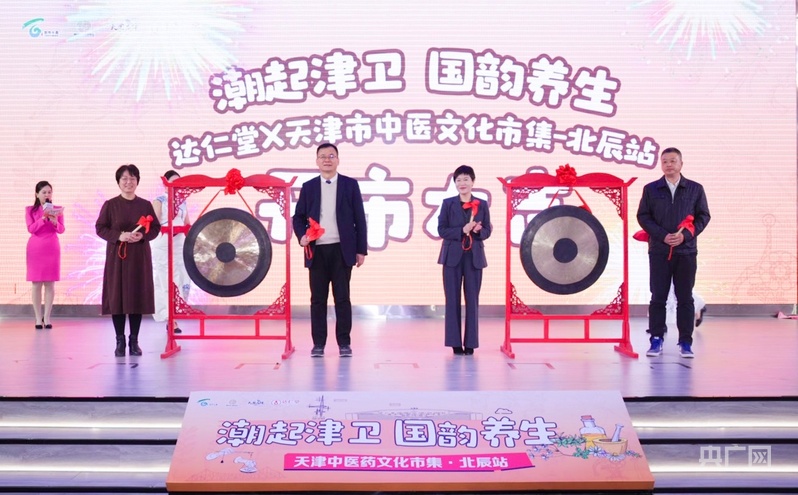 開(kāi)幕式上,《鼓韻東方》舞蹈、國(guó)家級(jí)非遺穆氏花毽表演、相聲《話說(shuō)咱北辰》、《大醫(yī)精誠(chéng)》選段誦讀、歌曲《滴水也弄潮》等節(jié)目輪番上演,現(xiàn)場(chǎng)氛圍濃厚,充分展現(xiàn)中醫(yī)藥文化與本土特色交融的獨(dú)特魅力。天津市衛(wèi)生健康委黨委委員、副主任于春泉強(qiáng)調(diào):“天津市始終將文化建設(shè)作為中醫(yī)藥事業(yè)高質(zhì)量發(fā)展的精神內(nèi)核與重要引擎,推動(dòng)了中醫(yī)藥事業(yè)與文旅產(chǎn)業(yè)深度融合、互促共進(jìn)!碧旖蚴斜背絽^(qū)副區(qū)長(zhǎng)賈宏偉致辭表示:“本次中醫(yī)文化市集是推動(dòng)中醫(yī)藥產(chǎn)業(yè)交流合作的重要平臺(tái),北辰區(qū)將持續(xù)優(yōu)化營(yíng)商環(huán)境,全力支持中醫(yī)藥企業(yè)落地生根、蓬勃發(fā)展!彪S后,與會(huì)領(lǐng)導(dǎo)共同鳴鑼?zhuān)嗅t(yī)文化市集北辰站正式開(kāi)市。