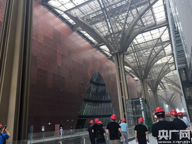 今天,記者隨政務(wù)大V一行來到天津濱海新區(qū)文化中心。據(jù)悉,濱海新區(qū)文化中心規(guī)劃總用地45.2公頃,總建筑面積51.3萬平方米,包括地上建筑面積39.9萬平方米,地下建筑面積11.4萬平方米,由濱海大劇院、航天航空博物館、現(xiàn)代工業(yè)博物館、濱海美術(shù)館、濱海青少年宮、傳媒大廈等組成。津濱海文化中心將于十月左右正式對外開放。
