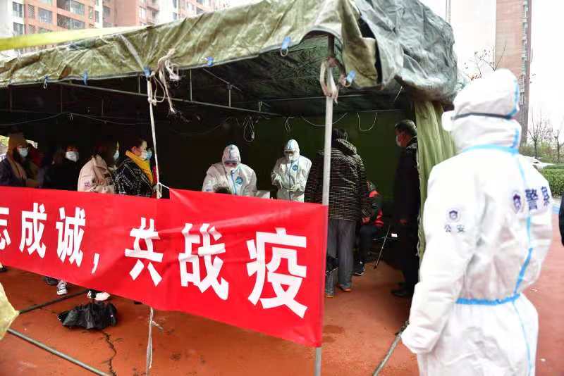 天津市濱海新區(qū)公安局公安干警引導(dǎo)居民有序排隊(duì)篩查(央廣網(wǎng)發(fā) 濱海新區(qū)公安局供圖)