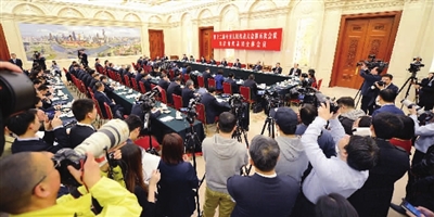 審議剛告一段落,隨著代表團(tuán)團(tuán)長(zhǎng)肖懷遠(yuǎn)宣布媒體采訪開始,記者爭(zhēng)相舉手發(fā)問。
