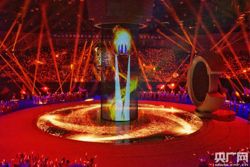 開幕式上主火炬點(diǎn)燃(央廣網(wǎng)發(fā) 張珀瑜 攝)