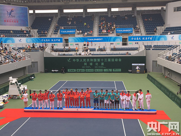 央廣網(wǎng)天津6月18日消息(記者 劉陽)6月18日,第十三屆全運(yùn)會(huì)網(wǎng)球團(tuán)體賽決賽在天津網(wǎng)球中心舉行。江蘇隊(duì)奪得男子組冠軍,天津隊(duì)奪得女子組冠軍。男子組最后決勝隊(duì)伍江蘇隊(duì)與浙江隊(duì)實(shí)力相近,最后以江蘇隊(duì)雙打配合優(yōu)勢(shì)險(xiǎn)勝浙江隊(duì)。而女子組團(tuán)體賽天津隊(duì)以兩名實(shí)力戰(zhàn)將張帥、彭帥,兩場(chǎng)單打以明顯優(yōu)勢(shì)奪得冠軍。