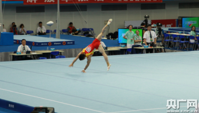本次天津全運(yùn)會(huì)體操項(xiàng)目執(zhí)行2017年至2020年奧運(yùn)周期的新規(guī)則,男子自由體操的動(dòng)作特定要求編排共分三組,第一組為非技巧動(dòng)作,第二組為向前技巧與向前魚(yú)躍滾翻類(lèi)動(dòng)作,第三組為向后技巧與阿拉伯系列動(dòng)作。