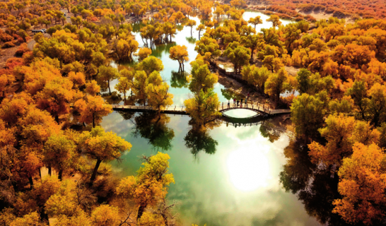 內(nèi)蒙古阿拉善盟額濟(jì)納旗境內(nèi)的胡楊林。(彭源于2019年10月16日攝)