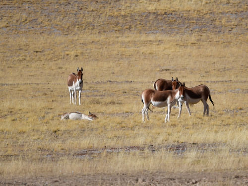 果洛藏族自治州瑪多縣境內(nèi)拍攝的一群藏野驢。