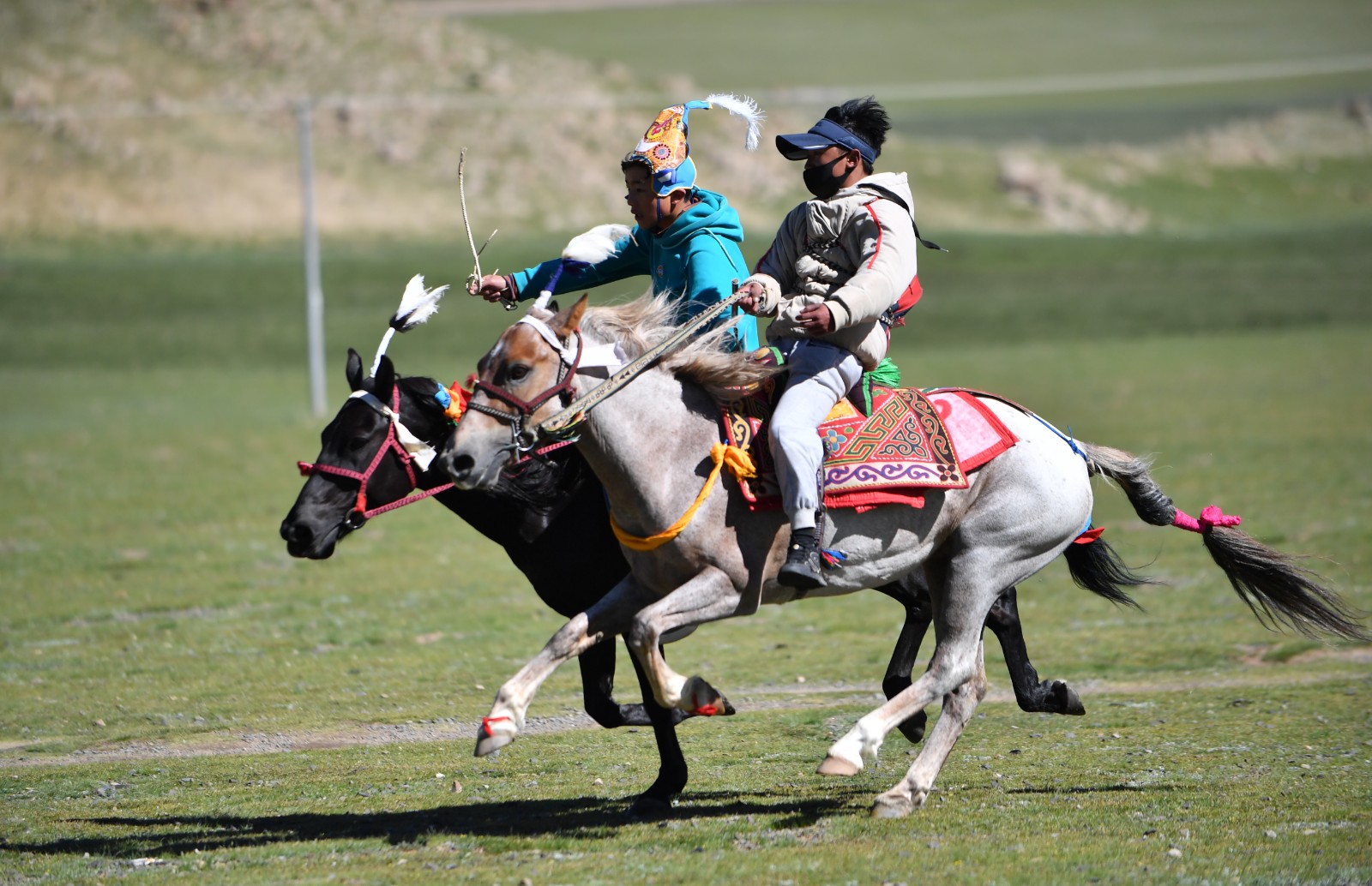 圖為7月15日,西藏班戈縣青龍鄉(xiāng)牧民在草原上賽馬。新華社記者 覺果 攝