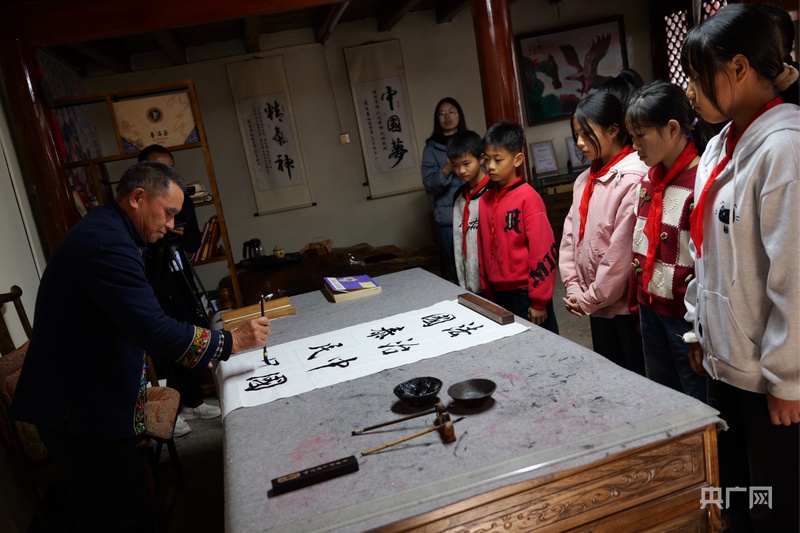 大革假自然村村民向孩子們進(jìn)行普法宣傳(央廣網(wǎng)實(shí)習(xí)記者 吳佳淇 攝)
