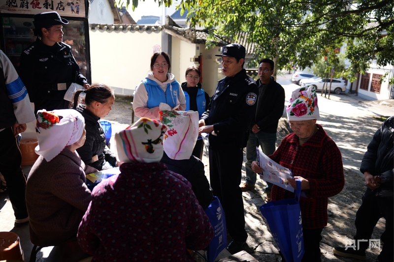 民警和志愿者正在進(jìn)行普法宣傳(央廣網(wǎng)實(shí)習(xí)記者 吳佳淇 攝)