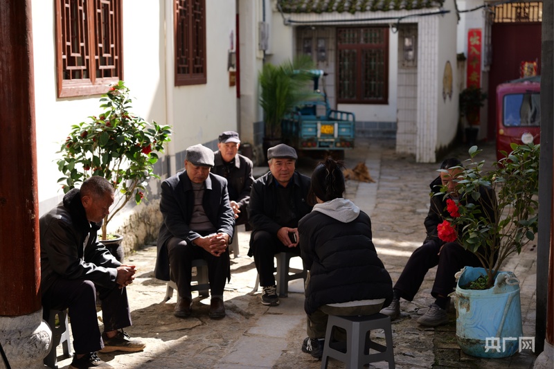 村民講述村內(nèi)的普法宣傳情況(央廣網(wǎng)實(shí)習(xí)記者 吳佳淇 攝)