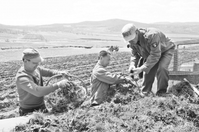 圖為在扎蘭屯市成吉思汗鎮(zhèn)馬家子村一個山坡上,扎蘭屯市煜軒中草藥種植農民專業(yè)合作社的社員們正在播種“百畝”蒼術試驗田。紀明國文/圖