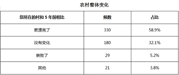 具體而言,有超過(guò)一半受訪者認(rèn)為所在村與5年前相比變得更加漂亮;只有5.2%的受訪者表示所在村與5年前相比變得衰敗了。