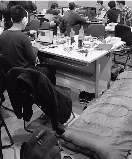 長(zhǎng)時(shí)間的頭腦風(fēng)暴讓這些年輕的創(chuàng)作者有些疲憊,有的參賽者已經(jīng)將準(zhǔn)備好的睡袋鋪開(kāi)進(jìn)行短暫的休息。隨著夜幕降臨,大家的熱情絲毫沒(méi)有降低,部分參賽者選擇睡在活動(dòng)現(xiàn)場(chǎng),這樣有問(wèn)題可以及時(shí)溝通,突如其來(lái)的靈感也能隨時(shí)和小伙伴分享。