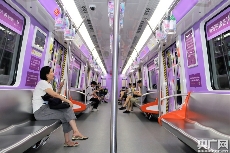 陳先生笑著說(shuō):“這輛列車(chē)很新鮮!以前一坐地鐵就拿出手機(jī)看,現(xiàn)在地鐵上的文字吸引了我們的注意力,營(yíng)造這樣的閱讀氛圍,對(duì)于孩子來(lái)說(shuō)意義很大!钡罔F工作人員告訴記者,彩虹悅讀專列每天共有14趟,從6:23到19:27,坐2號(hào)線的市民朋友都有機(jī)會(huì)偶遇“書(shū)香列車(chē)”。