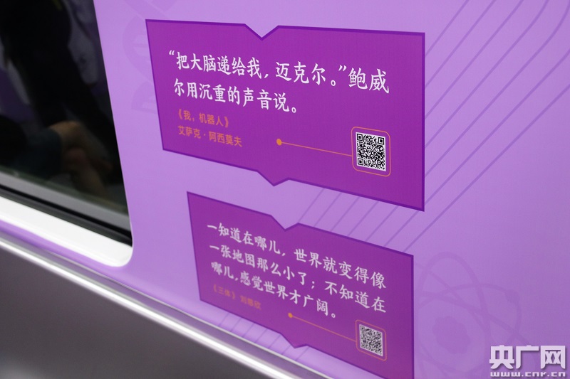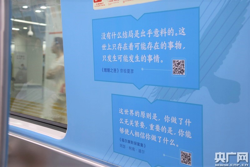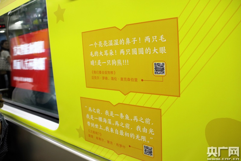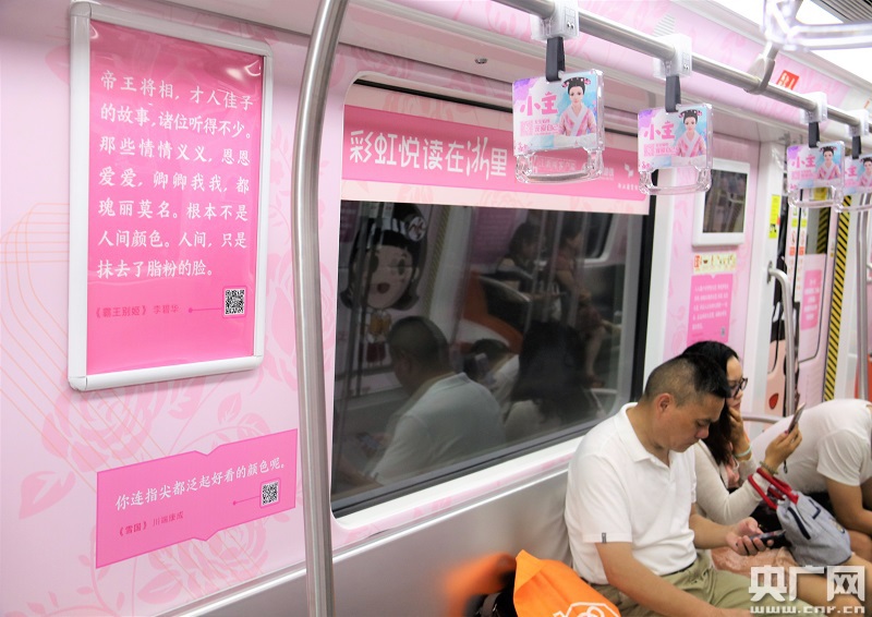 央廣網(wǎng)杭州8月8日消息(記者傅煒如)最近如果你搭乘杭州地鐵2號(hào)線,也許會(huì)遇見(jiàn)一輛文藝的列車(chē),六節(jié)不同顏色的車(chē)廂內(nèi),摘錄著國(guó)內(nèi)外名著的經(jīng)典選段,就像一本絢麗的立體書(shū)籍,讓你置身于書(shū)的世界……