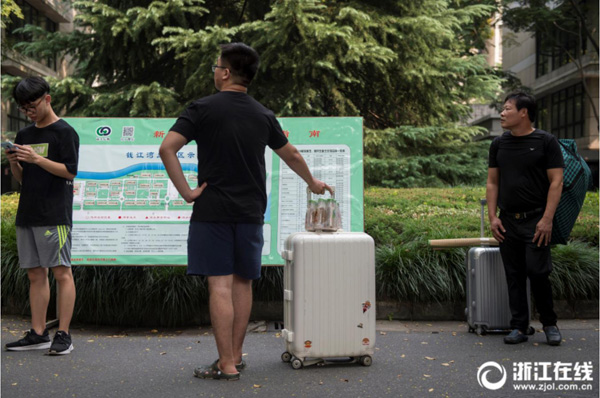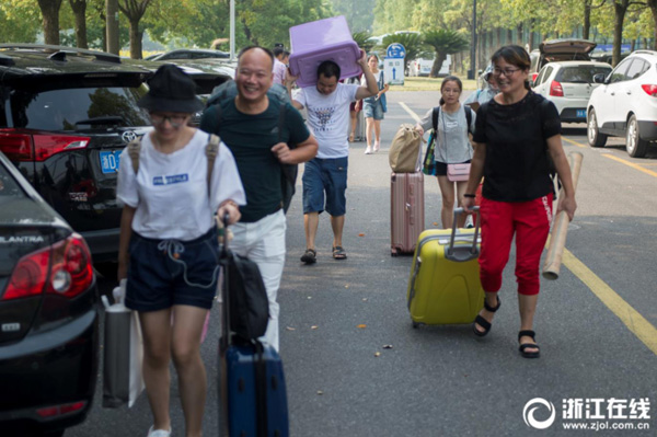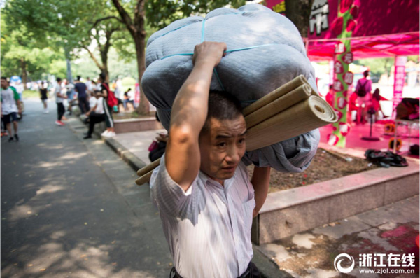 9月6日,又到一年開(kāi)學(xué)季,下沙各高校校園內(nèi)堪比春運(yùn)現(xiàn)場(chǎng)。校園里家長(zhǎng)人數(shù)甚至超過(guò)了學(xué)生,最重的行李也往往都在父母的肩膀上。父母?jìng)儾贿h(yuǎn)千里來(lái)送孩子上學(xué),幫孩子背行李、代辦手續(xù)、打掃寢室衛(wèi)生,忙得不可開(kāi)交。有的高校也在校園里豎起了讓孩子獨(dú)立的宣傳語(yǔ)。(浙江在線(xiàn)記者 馮賀 張孫超 見(jiàn)習(xí)記者 奕婷婷 攝)