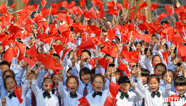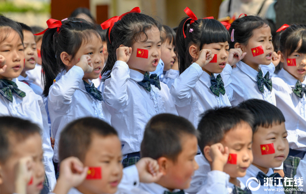 9月29日,德清縣下渚湖街道二都小學(xué)舉行“心向祖國心向黨 善行實踐助成長”國慶主題教育活動。全校師生一起高唱國歌,在國旗下宣誓,表達(dá)對祖國母親的熱愛和祝福,喜迎新中國69周年華誕。(記者 董旭明 拍友 王正 孫麗麗 攝)