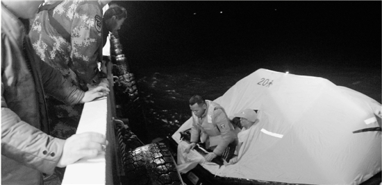 終于,救援人員看到了微弱的閃光。救援船頂著風(fēng)浪緩慢地向閃光點靠攏,當(dāng)時救生筏已偏離原位置1海里左右。